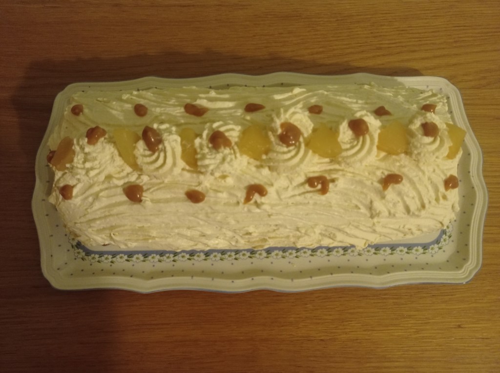 Bûche poires, caramel au beurre salé et crème mascarpone