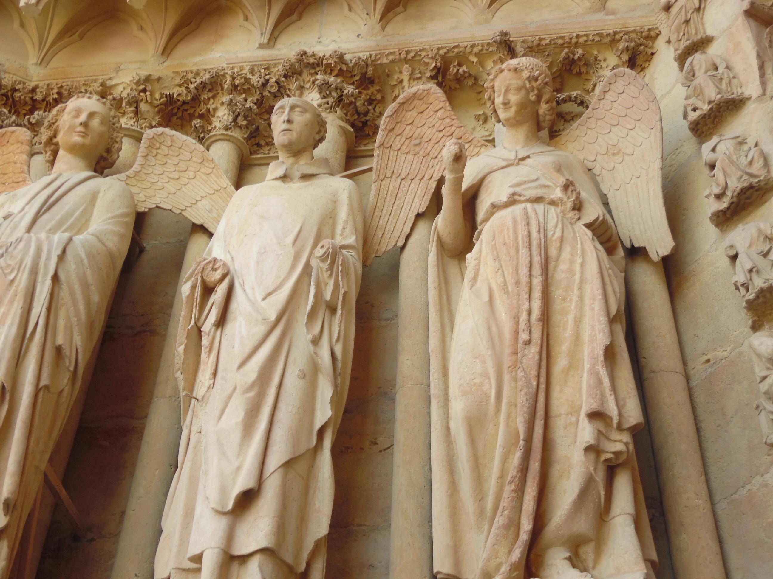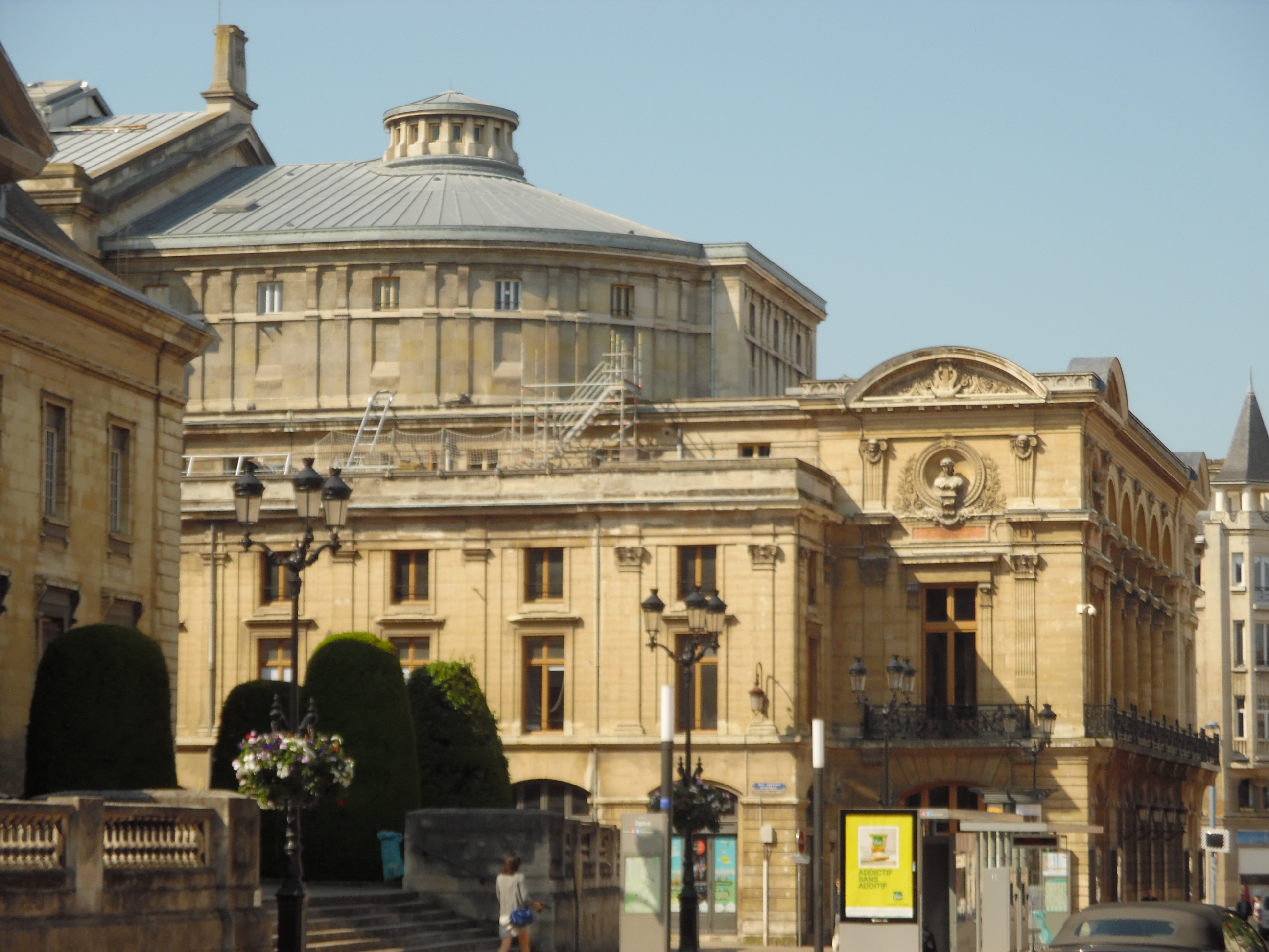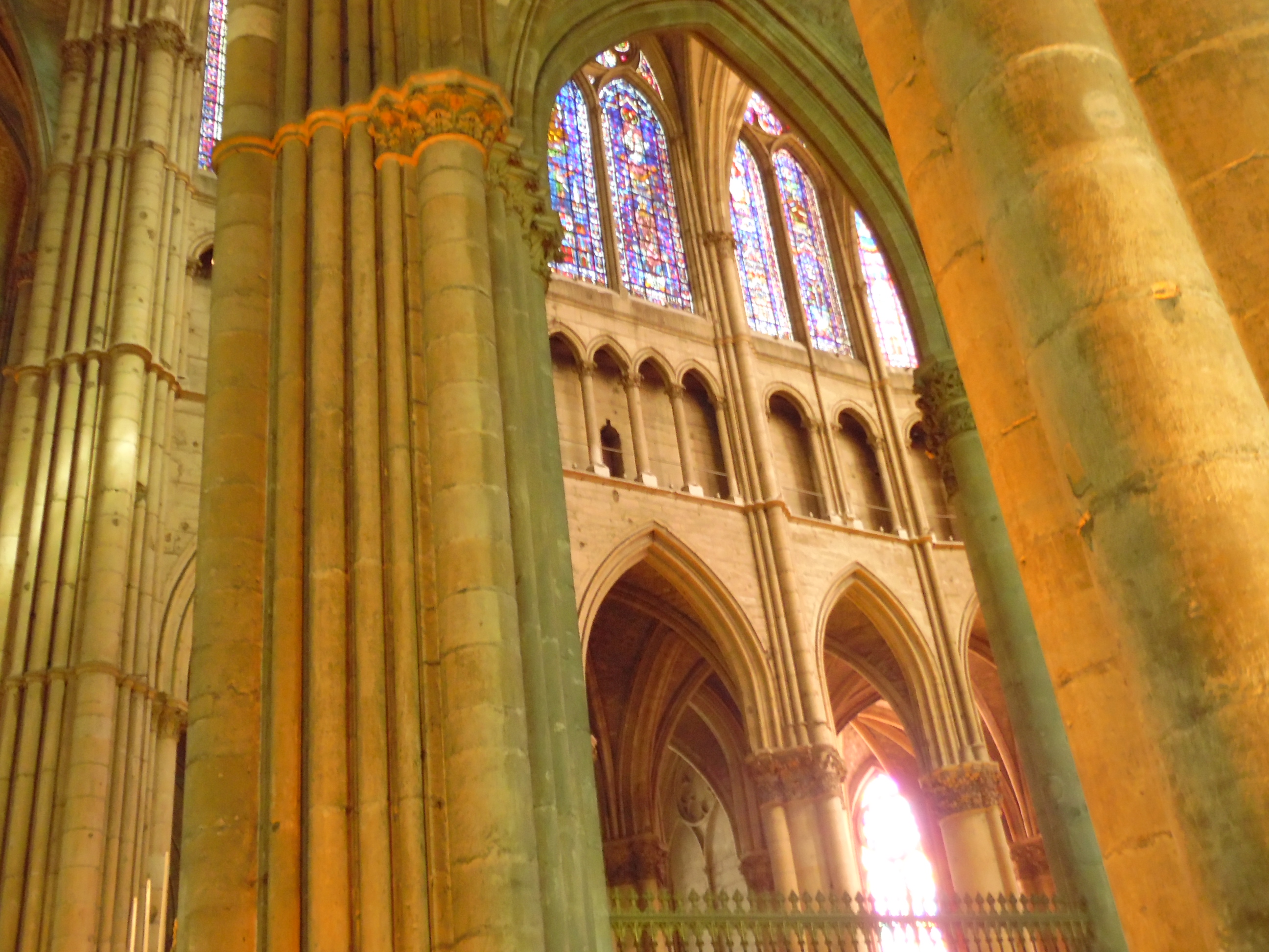 Le 2è groupe en autocar à la périphérie de la ville: visite de la basilique St-Rémi, passage devant les grandes maisons de Champagne, la place de la République, la porte Mars, etc.