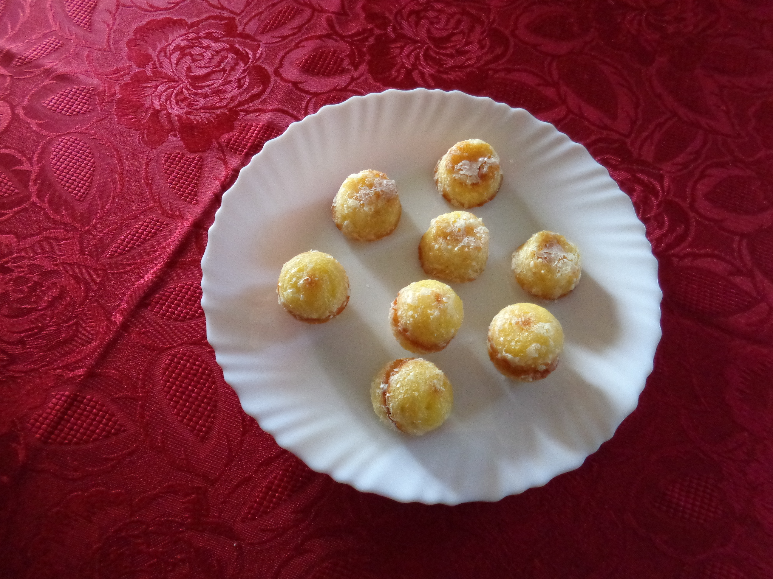 Remplir des moules demi-sphériques de 3 à 4 cm de diamètre, préalablement graissés. Enfourner à 180° pour 15 à 20 minutes.
