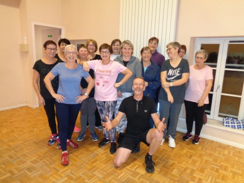 Une quinzaine de dames encadrées par Marc COLLET (animateur de septembre 2018 à février 2020) s’adonnent dans la bonne humeur à différents exercices : entretien de la souplesse, renforcement musculaire, travail de l’équilibre, etc.