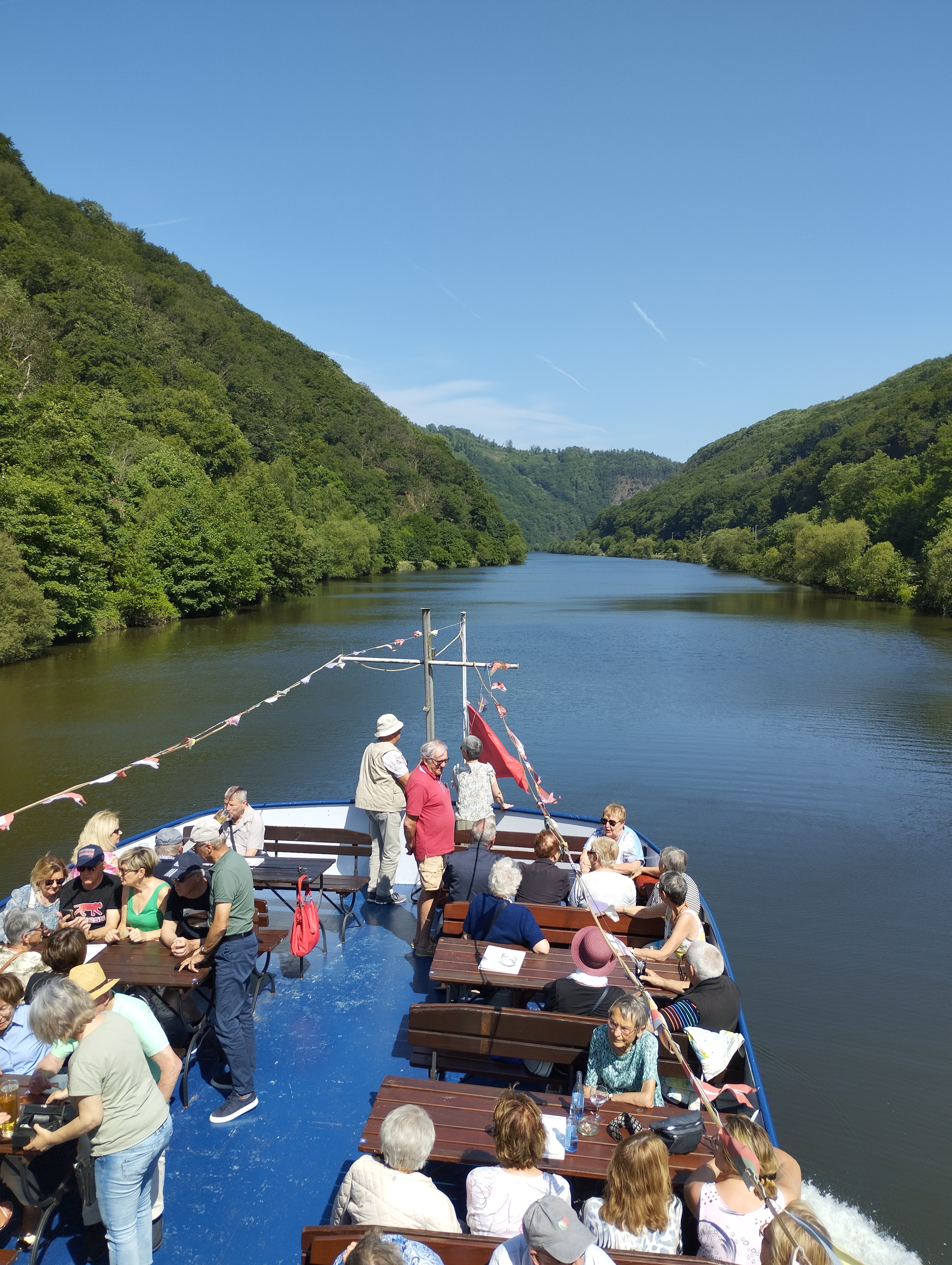 A bord du bateau sur la Sarre, nous avons pu admirer des paysages magnifiques, le temps était ensoleillé et chaud. Une pause café nous a été offerte sur le bateau.