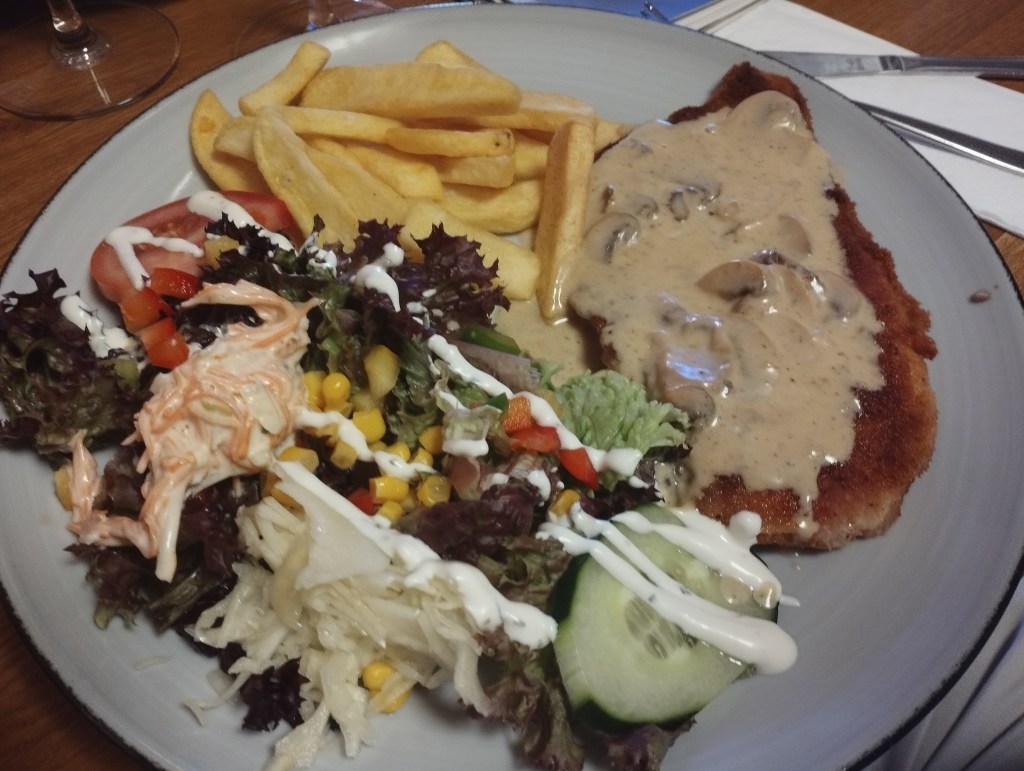 Le déjeuner dans un restaurant de la ville de Saarburg était copieux et excellent.