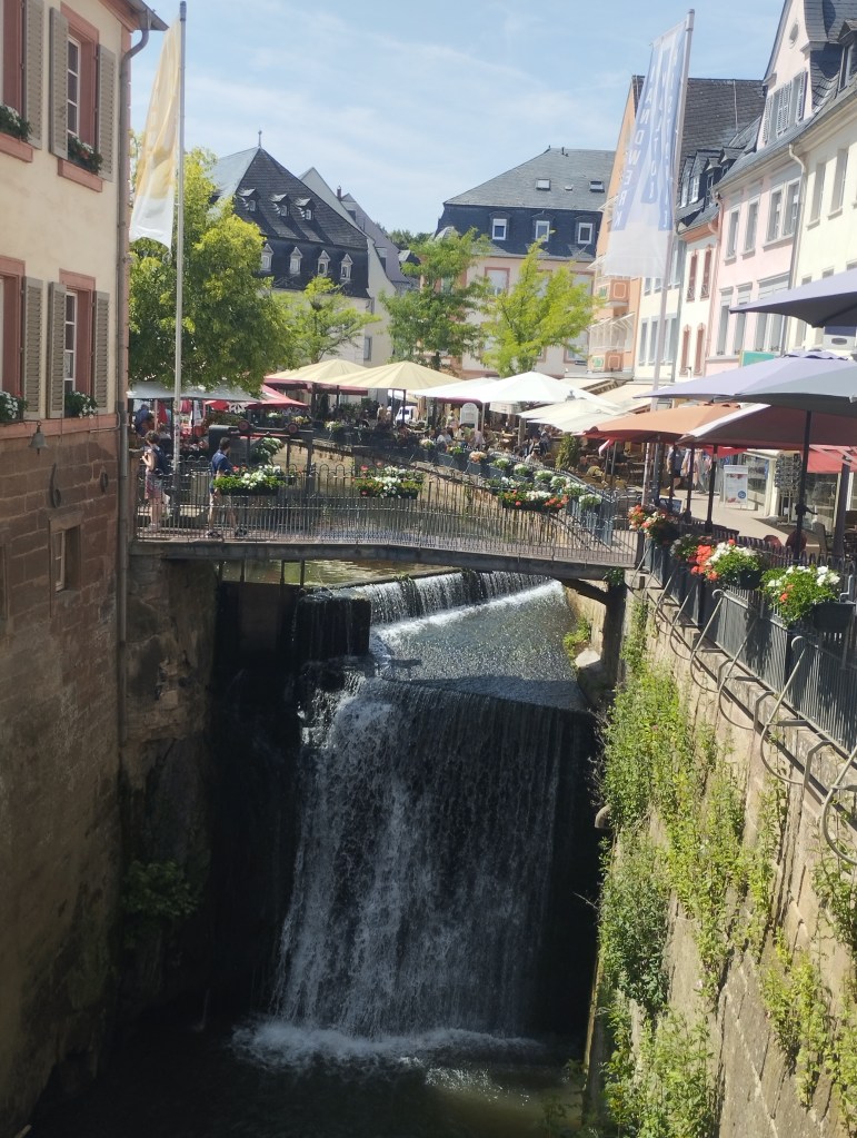 L’après-midi, visite libre de la ville de Saarburg, cité médiévale, surnommée la petite Venise au bord de la Sarre, avec sa cascade de 20m, ses petites ruelles, ses quais fleuris.