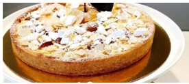 Finition : Répartir la crème d’amande sur la pâte sortie du frigo, la parsemer de 40 g d’amandes effilées et une trentaine amandes entières coupées en deux. Enfourner à 180° pour 35 à 40 minutes.